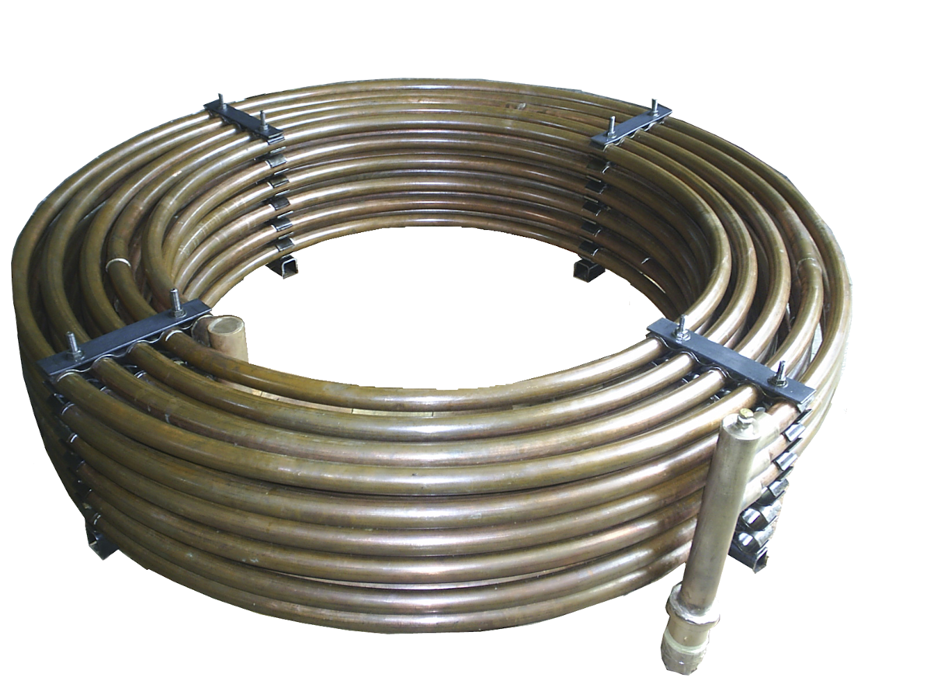 Los intercambiadores de Calor de Tubos Sumergidos son fabricados con tubos rectos o en forma circular, lisos o con aletas, en una sola pieza o en varias secciones, los cuales son instalados en depósitos donde operan sumergidos en el fluido de proceso para su calentamiento o enfriamiento. Una aplicación destacada de este equipo es el enfriamiento de aceite de los cojinetes guía y de empuje en las centrales hidroeléctricas, donde el aceite de lubricación circula por fuera de los tubos mientras el agua de rio circula dentro de los tubos. Termia cuenta con el conocimiento y experiencia para brindar asesoría en el diseño del equipo y la selección apropiada de materiales.